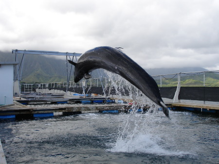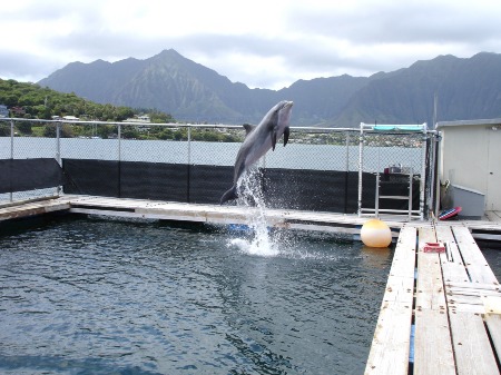 Wenns um Akustik geht, dann sind die Delfine natürlich nicht weit!!! Gestern wurde ich eingeladen mit zu den Außenanlagen der Insel zu fahren, um sie zu trainieren. Darf ich vorstellen, Kina, Boris ,BJ und ihr Junges Hoólono. Drei Delphine und ein „falscher“ Killerwal. Alle vier sehr freundliche, spielfreudige und inspirierende Tiere.