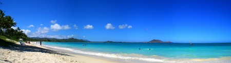 Nach einer Stunde Busfahrt war endlich Kailua erreicht. Eine weitere Wanderung und ein paar Blasen mehr (neue Flip Flops) später war ich am Strand. Und es hat sich mehr als gelohnt. Puderweicher Sand, warmes Wasser, wenig Leute und viele Palmen.