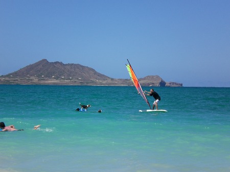 Leider waren keine Wellen, aber das kommt sicherlich auch noch. Trotz allem habe ich einen laut bellenden Wellensurfer getroffen. Es hat den Anschein als ob hier nicht nur die Hawaiianer surfen. Aloha