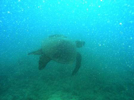Danach kam der härteste Part des Ausfluges. Es ging übers Wasser, vorbei an den Riffen und den großen Wellen nach Moku Nui (siehe Bild unten, links Moku Nui, rechts Moku Iki und zusammen heißen sie Mokulua). Scheint ein Ausflugsziel der Natives zu sein, denn auf dem kleinen Strand tummelten sich jede Menge Leute und Kajaks. Doch wir hatten nur ein Ziel: Taucherbrille auf und ab ins Wasser, denn hier gibt’s Seaturtles! Und tatsächlich nach zwei Minuten schwebte die erste Schildkröte an uns vorbei. Super Anblick! Sehr elegant und überlegen segelte sie über den Grund, bis sie dann in den blauen Weiten des Ozeans verschwand. Vier Stück sind uns über den Weg geschwommen! Ein wunderschöner Tag, auch wenn wir am Ende alle einen kleinen Sonnenstich hatten. Aloha